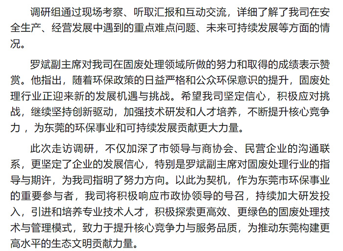 市政协副主席罗斌走访我司:点赞固废处理成效,寄语创新驱动未来